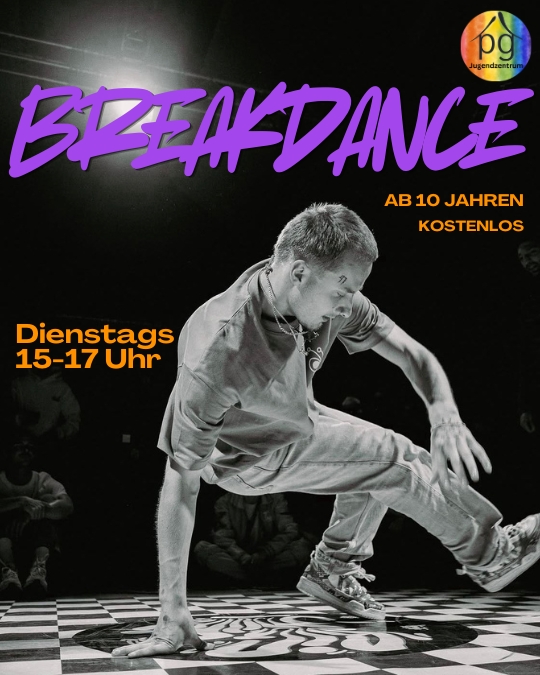 Jeden Dienstag von 15-17 Uhr gibt Nikita bei uns einen kostenlosen Breakdance Kurs für alle ab 10 Jahren.